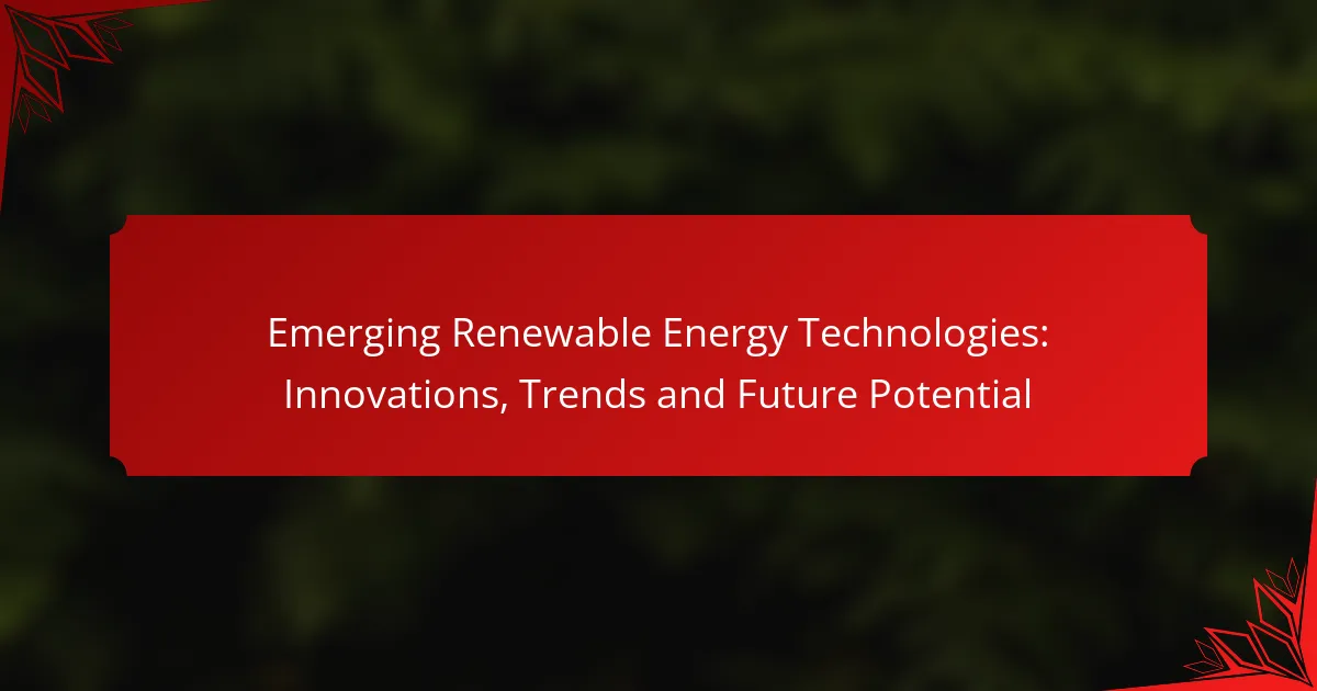 Emerging renewable energy technologies are revolutionizing the energy landscape by enhancing efficiency and reducing costs while promoting sustainability. Innovations such as advanced solar photovoltaic systems, cutting-edge offshore wind solutions, and hydrogen fuel cell developments are driving a transition towards cleaner energy sources. These advancements not only improve energy production but also offer significant economic benefits, including job creation and investment opportunities, fostering a more sustainable future.